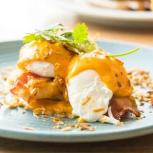 INGREDIENTS Hollandaise Sauce: Poached Eggs: Benedict: DIRECTIONS Bacon: Blender Hollandaise sauce: Poached Eggs: Assembly:
