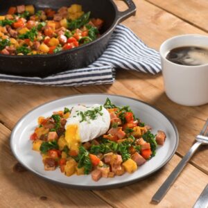 A poached egg sits on top of a bed of seasoned potatoes, peppers, kale and Kentucky Legend ham in this roadside-diner classic. INGREDIENTS DIRECTIONS Tip: To poach eggs, bring saucepan or skillet of water to a boil. Add 1 tsp vinegar; reduce heat to simmer. Crack one egg into a small dish. Swirling water, gently […]