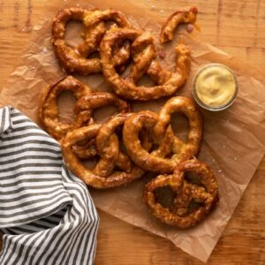 These fun pretzels are made with store-bought pizza dough for quick and easy preparation. INGREDIENTS DIRECTIONS Tip: Sprinkle pretzels with sesame seeds, or flaked sea salt instead of coarse salt if desired.