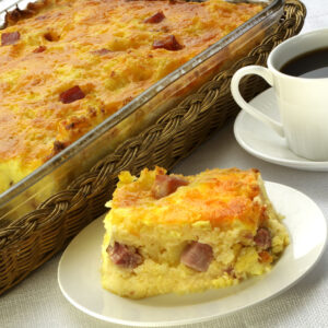 This fun and festive casserole makes a hearty breakfast or brunch. INGREDIENTS DIRECTIONS Tip: Substitute aged cheddar or a pre-shredded Mexican-style cheese blend for Monterey Jack cheese.