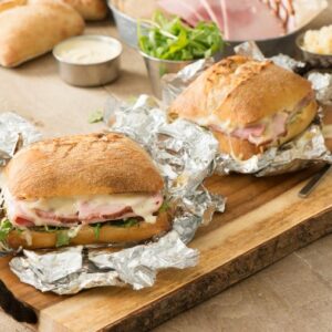 You can skip the hassle of outdoor cooking but still enjoy a delicious, satisfying meal by preparing these sandwiches in advance, then just toasting in the hot coals of a relaxing fire under the stars. INGREDIENTS DIRECTIONS Tip: Foil-wrapped sandwiches can also be warmed in 425°F (220°C) oven for 12 to 15 minutes.