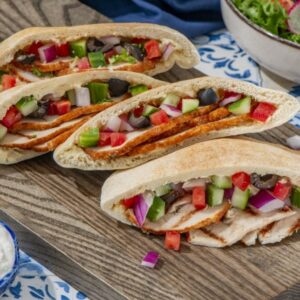 Packed with lean protein and fresh vegetables, these Mediterranean-inspired pitas make for a light, fresh and filling summertime meal! INGREDIENTS DIRECTIONS Tip: These pitas are also delicious served with an herbed vinaigrette for dipping or drizzling over top. For added kick, drizzle with hot pepper oil or add sliced pickled banana peppers to pitas.