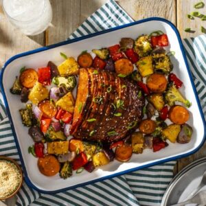 With a simple marinade, this easy one-pan turkey dinner with colorful, hearty vegetables is as visually appealing as it is delicious. INGREDIENTS DIRECTIONS Tip: To use the broccoli stem as well as the florets, trim woody end of stem and peel before cutting into 1-inch chunks