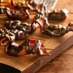 These sweet and spicy bacon skewers are absolutely irresistible, so you better make a double batch. They go fast! INGREDIENTS DIRECTIONS Tip: Garnish with a variety of items, such as chopped dried apricots, candied ginger, toasted coconut, chopped pecans or crushed peanuts.