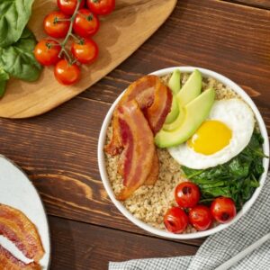 These hearty, balanced, delicious bowls start the day right and keep you fueled. Crispy bacon adds umami to vegetables and fluffy quinoa for an easy yet satisfying breakfast. INGREDIENTS DIRECTIONS Tip: For added flavor, sprinkle with your favorite grated cheese, if desired. Serve with hot sauce on the side for a spicy kick.