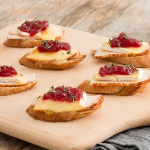 Turkey and Brie are always a winning combination – especially when paired with a sweet-tart flavor for a well-rounded bite. INGREDIENTS DIRECTIONS Tip: For a spicy variation, stir together 1/4 cup hot red pepper jelly with 1/4 cup cranberry sauce.