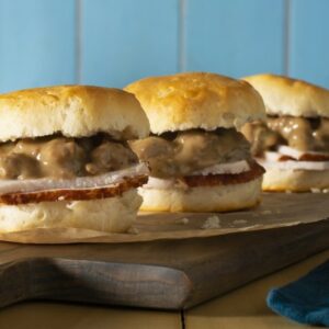 These saucy turkey sliders deliver comfort food flavors that are sure to please. INGREDIENTS DIRECTIONS Tip: Alternatively, use store-bought biscuit mix and prepare according to package directions. On a lightly floured surface, roll out dough into 1/2-inch thickness. Using 1 1/2-inch round cutter, cut out 24 rounds. Bake according to package directions, adjusting baking time […]