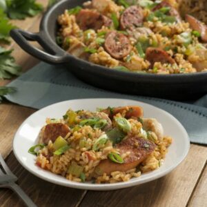 Sausage, chicken and shrimp come together deliciously in this from-scratch, hearty Cajun classic. INGREDIENTS DIRECTIONS Tip: Cook 1 lb large shrimp along with the chicken and sausage for an authentic Louisiana combination.