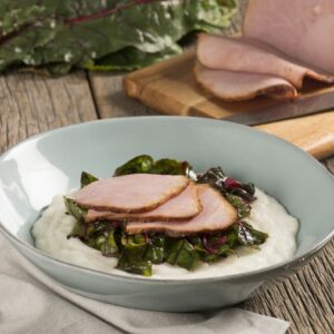 So simple to prepare that you’ll actually get to enjoy your guests’ company while the ham bakes and they rave about how delicious it smells – just set aside a few minutes before serving to make the side dishes. INGREDIENTS Glazed Ham: Creamy Grits: Sautéed Chard: DIRECTIONS Tip: