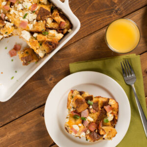 Thick slices of brown sugar ham are layered with Swiss cheese and bread before an overnight soak in an easy egg custard. Drizzled with warm cranberry sauce and a dusting of confectioners’ sugar, it’s the ultimate make-ahead brunch for a crowd! INGREDIENTS DIRECTIONS Recipe Courtesy of Food Network Kitchen