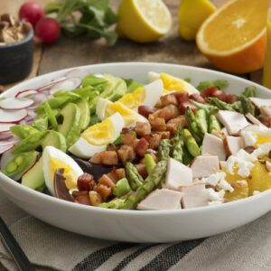 Featuring asparagus, snap peas, spring greens and a citrusy vinaigrette, this Cobb Salad is the epitome of fresh spring flavors. INGREDIENTS Dressing: Salad: DIRECTIONS Tip: